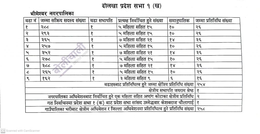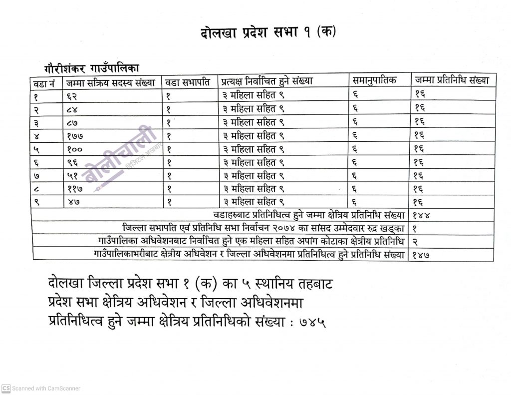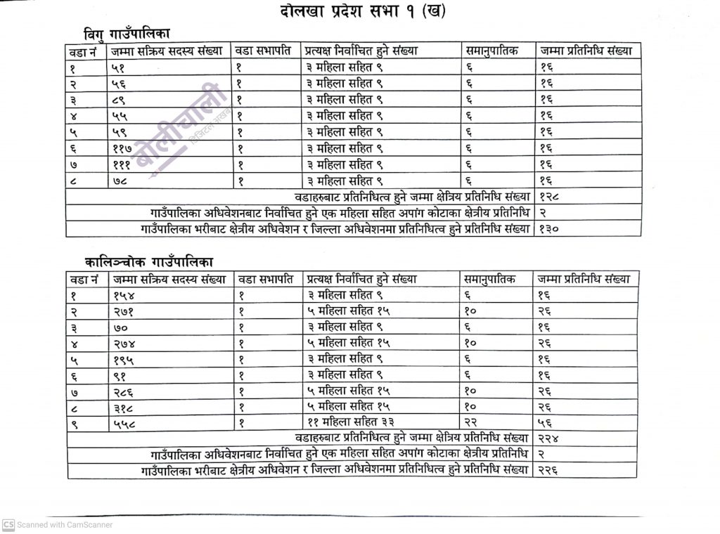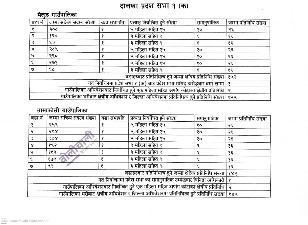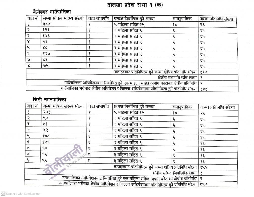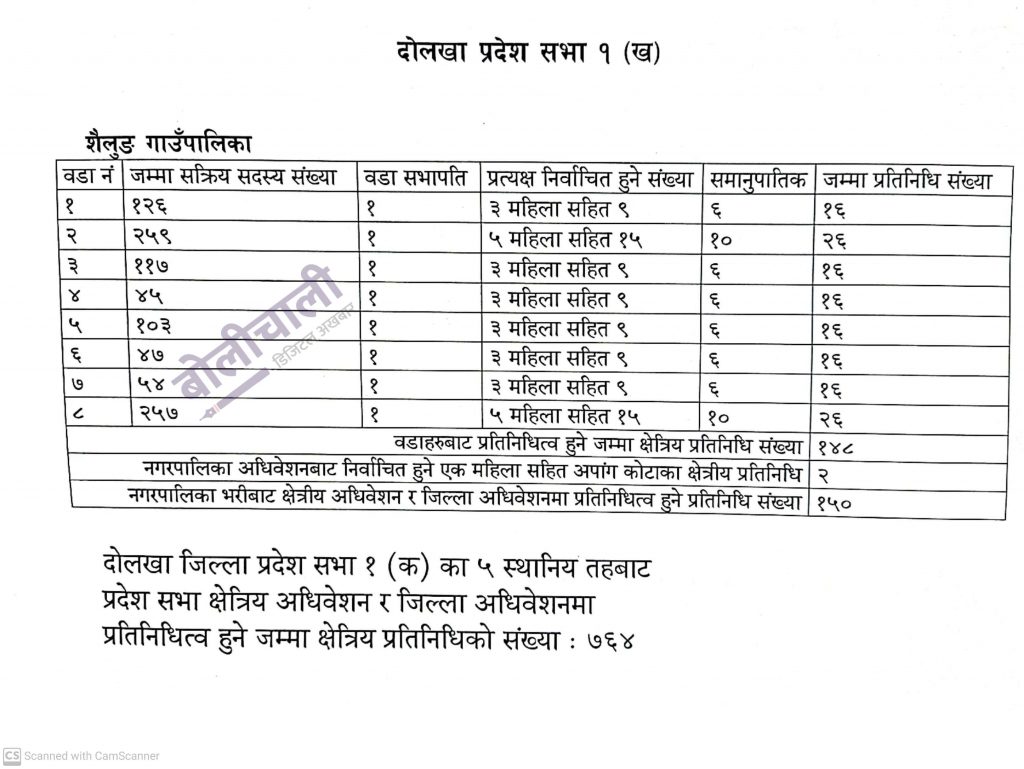 दोलखामा वडाबाट प्रतिनिधित्व हुने क्षेत्रीय प्रतिनिधिको विवरण